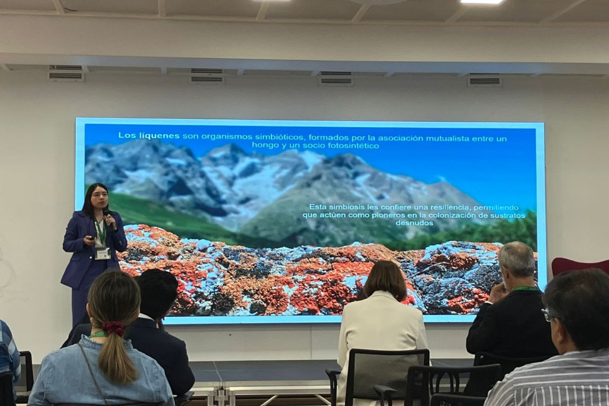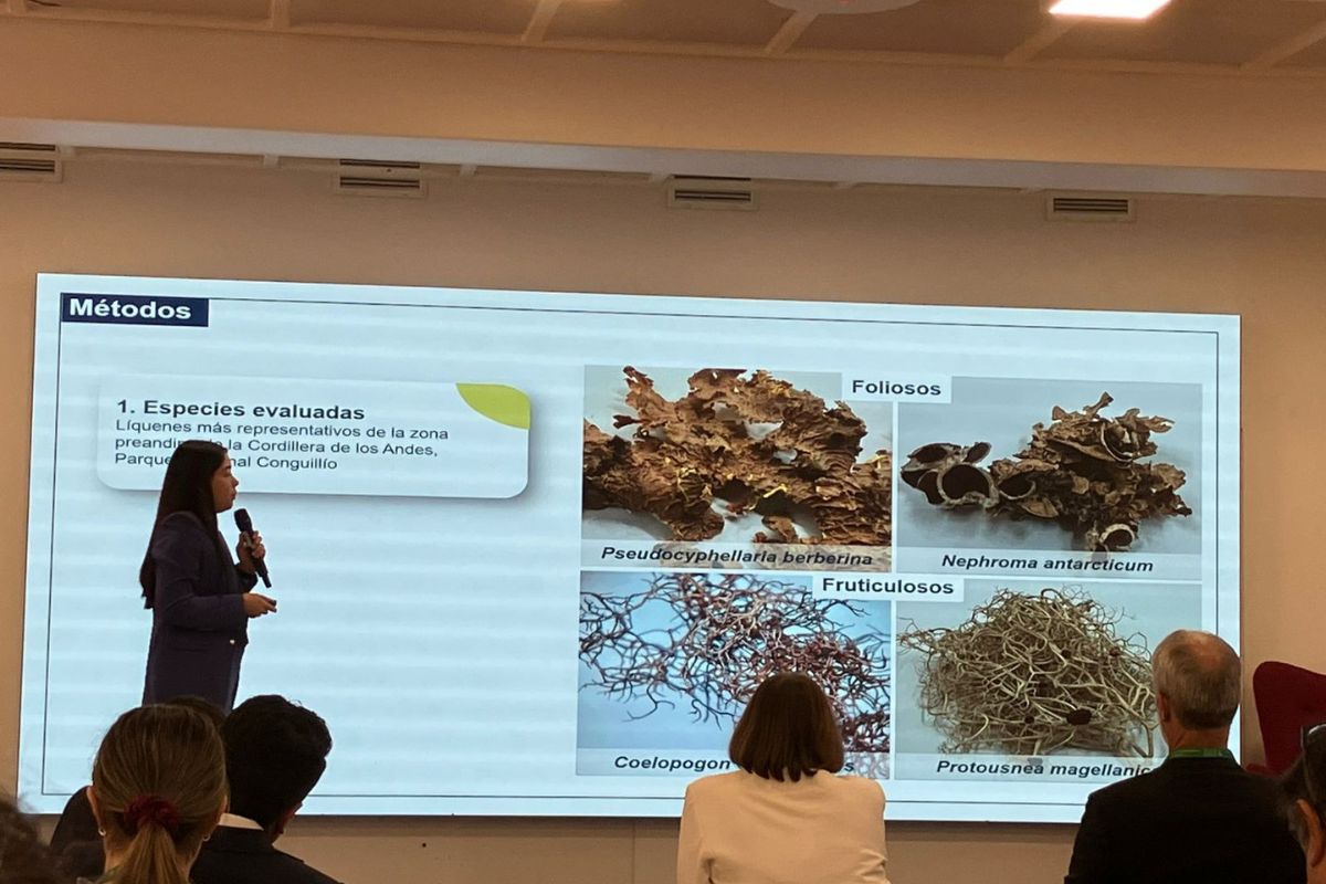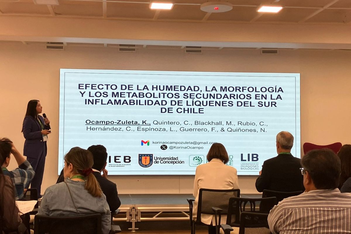 En la ocasión, la Dra. Ocampo-Zuleta presentó la charla titulada “Efecto de la humedad, la morfología y los metabolitos secundarios en la inflamabilidad de líquenes del sur de Chile”, donde expuso los principales resultados de su investigación posdoctoral, desarrollada en colaboración con académicas y académicos nacionales e internacionales. En su presentación destacó la relevancia ecológica de los líquenes y su vínculo con procesos asociados a incendios en ecosistemas del sur del país.
