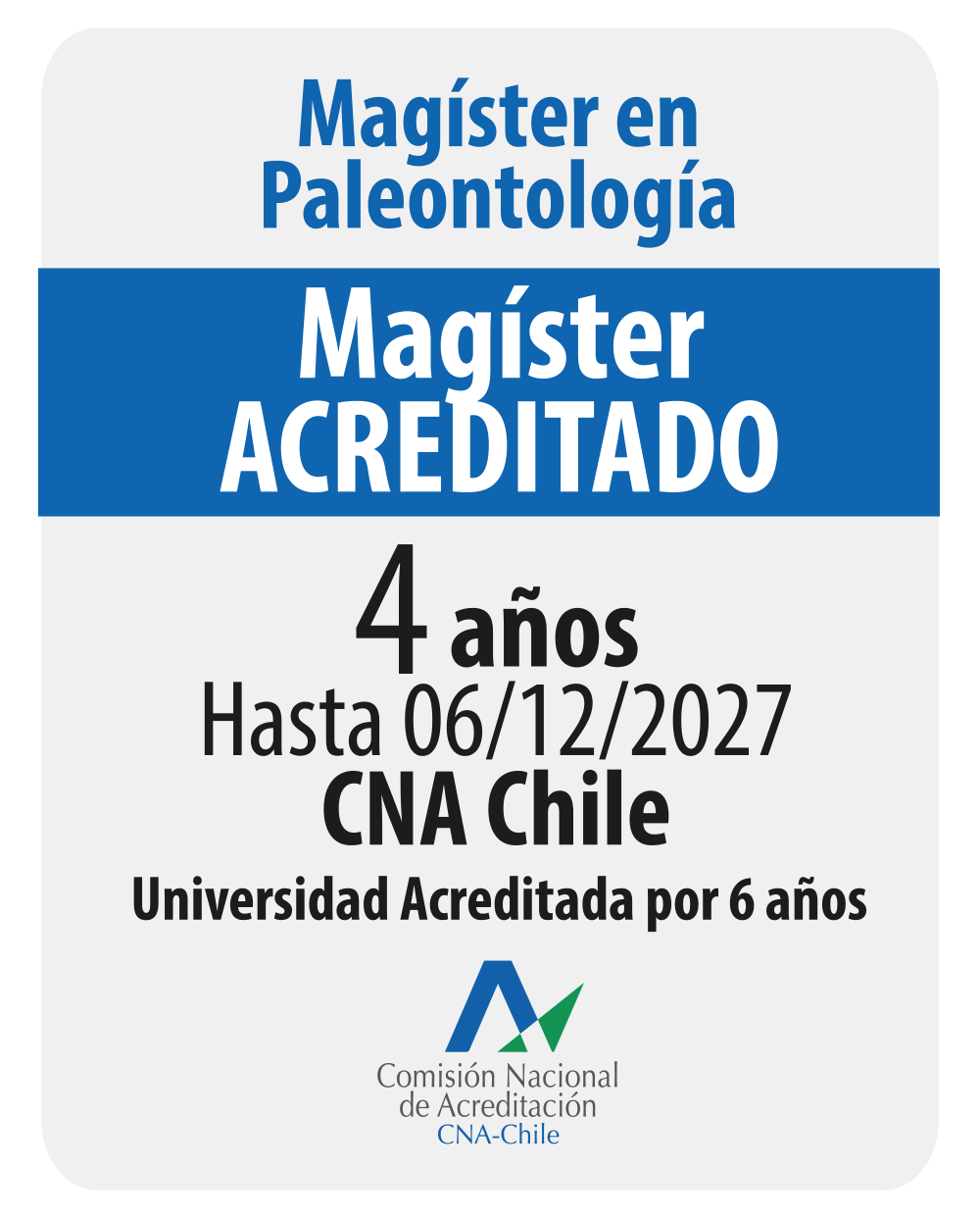 Es por ello, que fortalecer y potenciar la entrega de herramientas que permitan el desarrollo de las actividades de investigación desde una perspectiva teórica y experimental, es un eje de trabajo fundamental y permanente para todos y todas quienes integran el claustro del Magíster en Paleontología y la Escuela de Graduados de la Facultad de Ciencias UACh, a nivel académico y de gestión, lo cual ha permitido este 2023 obtener una acreditación de 4 años por parte de la Comisión Nacional de Acreditación (CNA)