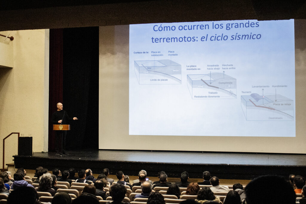 A continuación el Dr. Daniel Melnick, académico del Instituto Ciencias de la Tierra y Escuela de Geología de la Facultad de Ciencias UACh e investigador del Núcleo CYCLO, abordó el tema “Terremotos en Valdivia: de minutos a milenios”. En su exposición dio a conocer los temas terremoto de 1960 y sus predecesores, evolución del estuario de Valdivia desde 1960 y mirando al futuro, y el río San Pedro y el Riñihuazo.