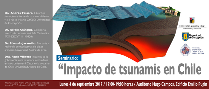 *Grupo de investigadores se reunirá a discutir acerca de las causas y efectos de estos fenómenos en el territorio. Cuatro investigadores se reunirán en Valdivia en el seminario titulado “Impacto de los tsunamis en Chile”.  El evento estará abierto a la comunidad universitaria y valdiviana, sin costo y se llevará a cabo en el salón … Leer más